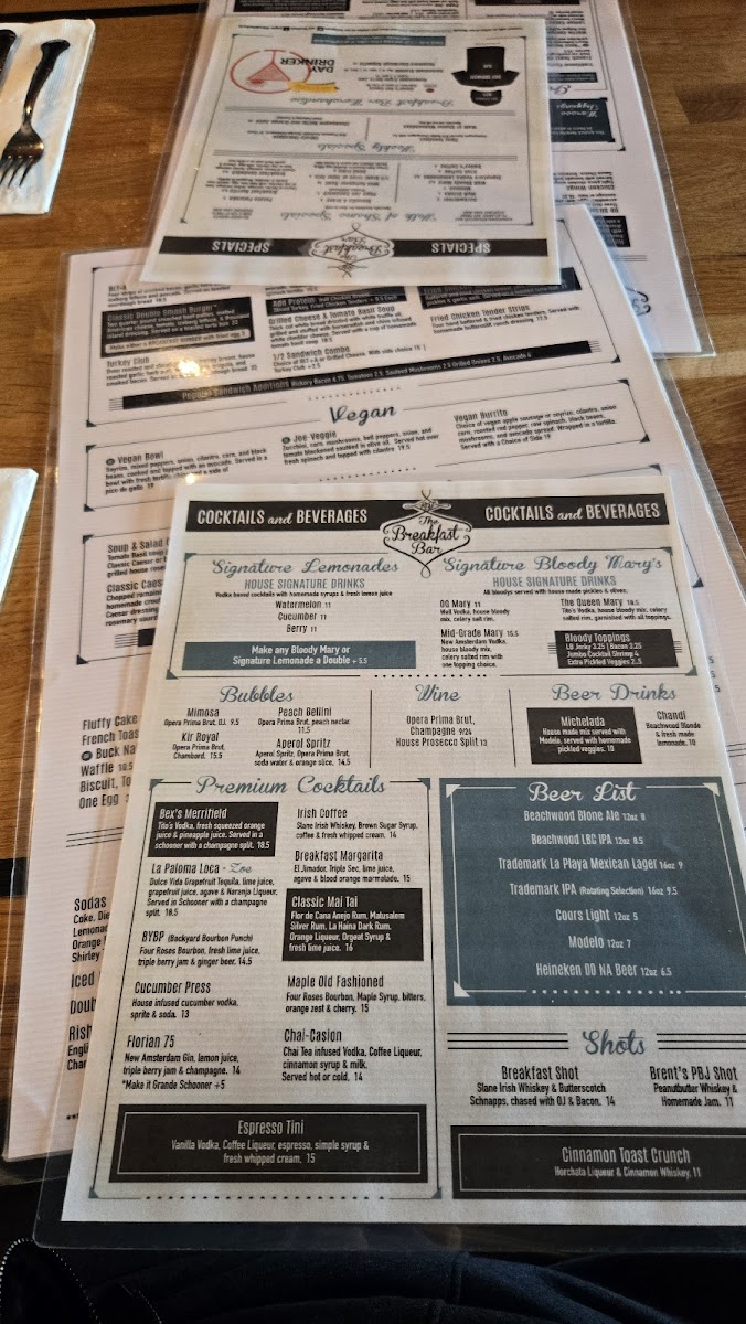 Two of Dad's favorite lemon cake pancakes topped with fresh berries, drizzle of citrus frosting and powder sugar. served with two eggs cooked anyway you like and choice of protein.