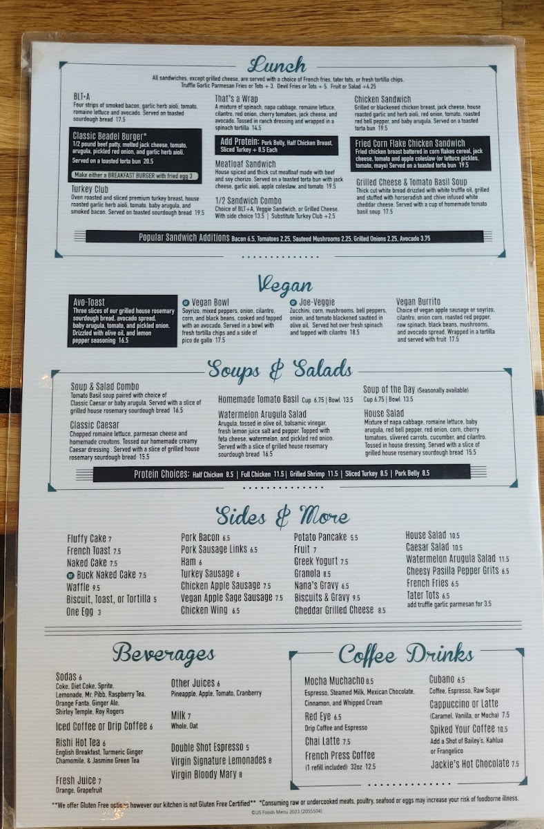 House spiced thick cut meatloaf made with beef, pork and soy chorizo. topped with two eggs cooked anyway you like. Served with potato pancake and house rosemary bread.